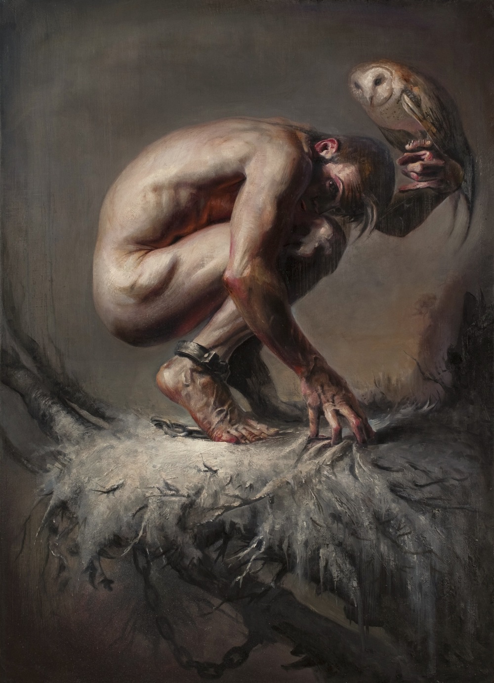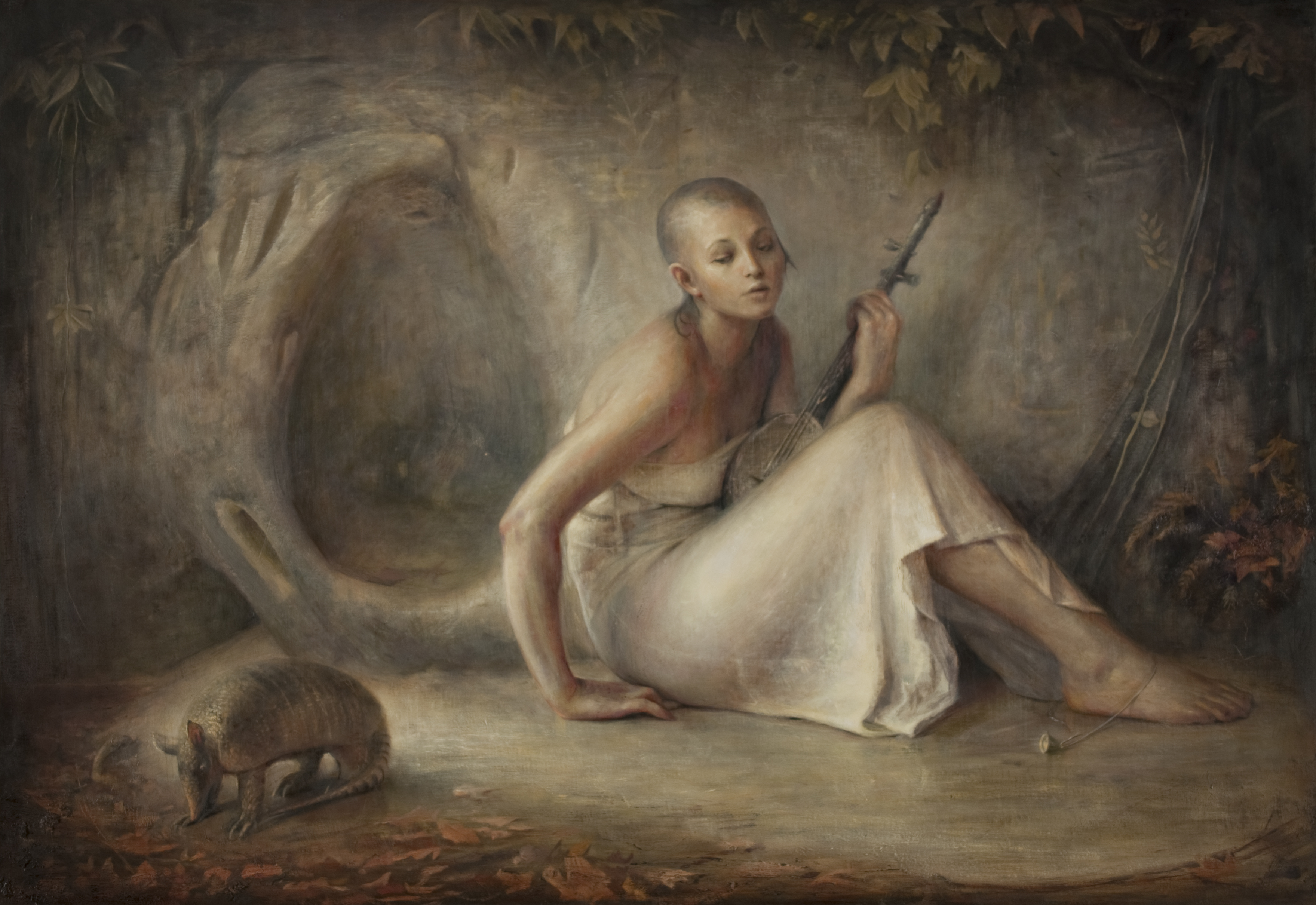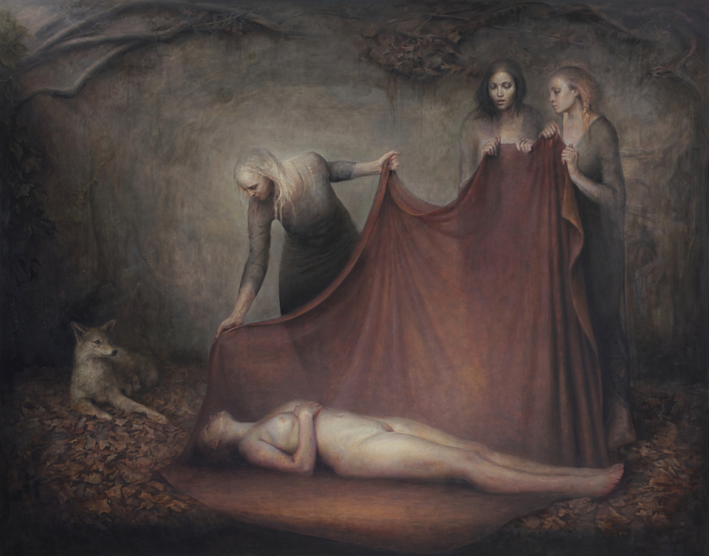 Using the palette of the Ancient Greek painter Apelles Luke paints friends and a collection of taxidermied animals, illustrating the primal beauty of humans at their most noble with narratives that center on themes of death, kinship, ritual, and wilderness.